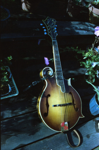 こちらが、最初に手に入れた「マンドリン」です。 Suzuki製です。 安い値段の楽器なのですが、表板は単板です。 今でも、持っています。 |