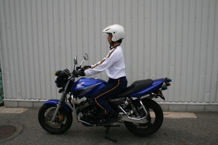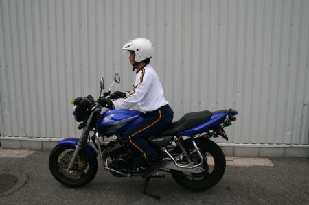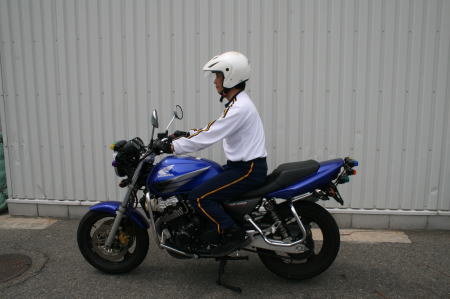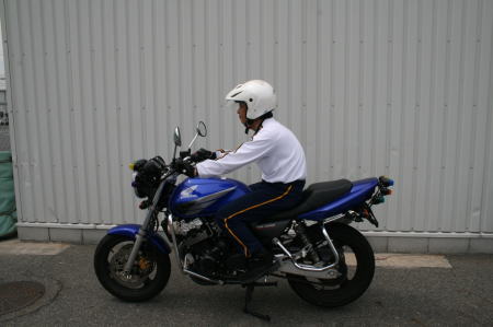 そしてもう1人の教官は(私を含めた「現役のバイクに乗ってる派」が支持した方)・・・交通機動隊の現役の『白バイ』隊員でした。しかも、「白バイ競技会」の日本チャンピオンでした!!!