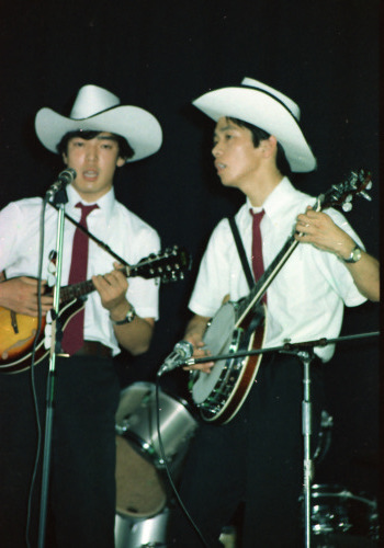 高校の文化祭の時です。 この時に、「ブルーグラス」を 知っているのは、私だけでした。 仲間に無理やり練習させて、 即席の「ブルーグラス・バンド」 を作って演奏しました。 |